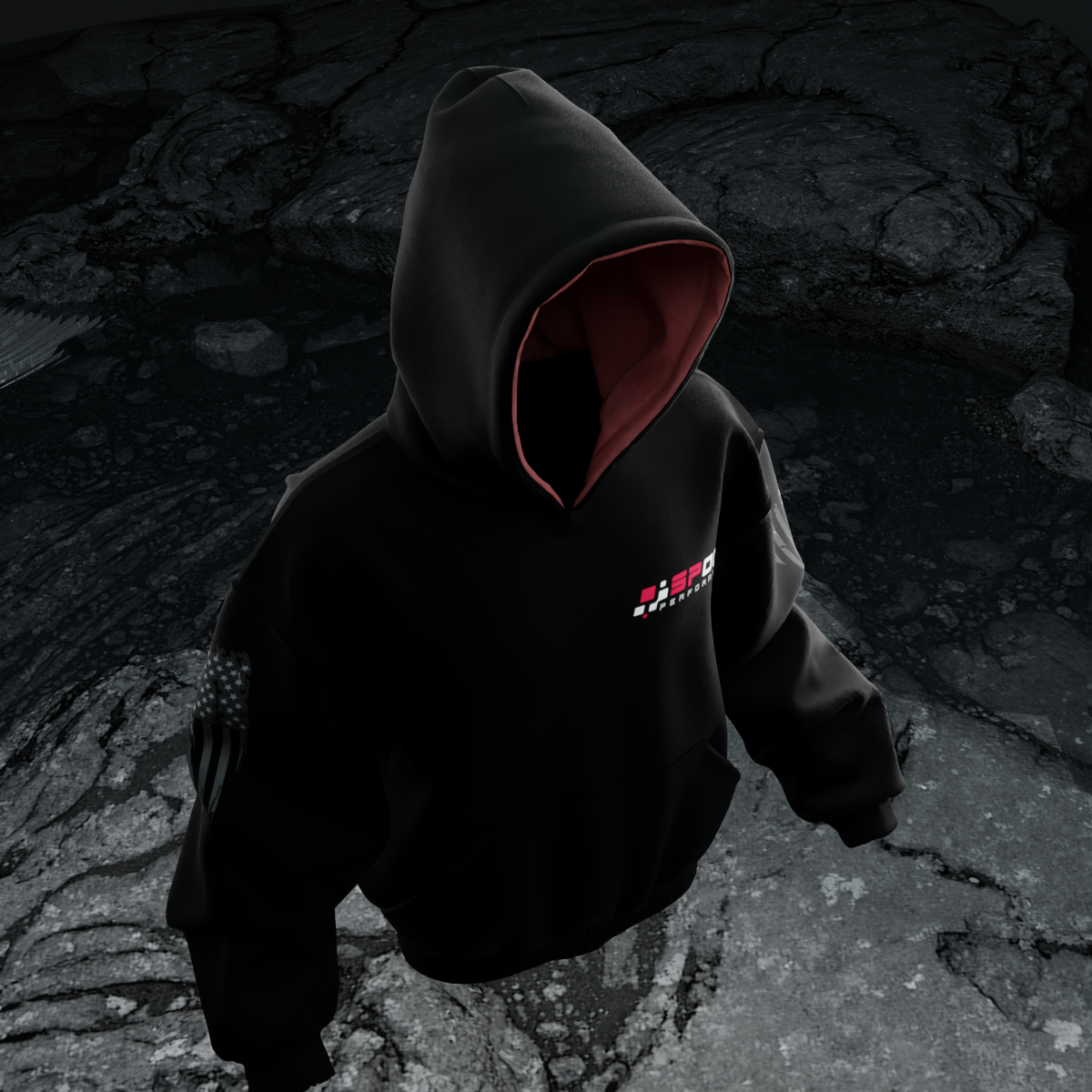 The Motion Theory Premium Hoodie takes a more design-focused approach, combining multiple performance silhouettes into a single, cohesive composition. With subtle red accents layered over a monochrome base, the graphic captures movement, contrast, and the visual side of performance culture.